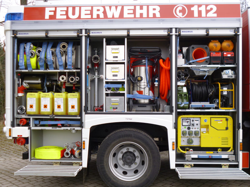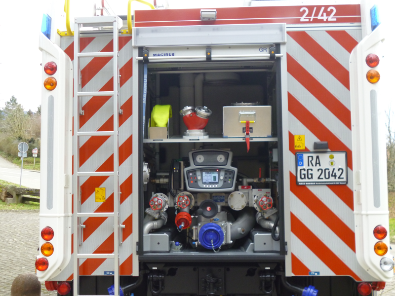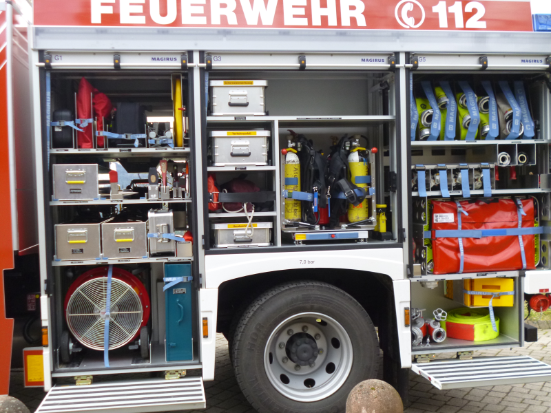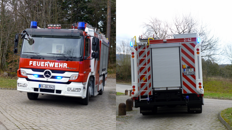Fakten zum Fahrzeug: Fahrgestell: Mercedes-Benz Atego Fahrgestell 1326 F Motor: 6 Zylinder mit 256 PS Getriebe: Automatik Gewicht: 12 Tonnen Besatzung: 9 Mann Löschmittel: Wassertank 1600 Liter Fassungsvermögen Pumpe: FPN 10-2000 Feuerlöschkreiselpumpe Sondersignalanlage: 2x Hänsch RKL Nova Doppelblitzleuchten , integrierte Power LED Blitzleuchten an Fahrzeugheckonsole (Magirus/Hänsch), LED Sputnik Nano Frontblitzer, Martinhorn Druckluft Aufbau/Beladung: Umfangreiche feuerwehrtechnische Beladung nach DIN, pneumatisch ausfahrbarer Lichtmast hinter der Fahrerkabine (schwenk/drehbar) mit Fernsteuerung und Xenon Licht von Teklite, Rückfahrkamera in Farbdisplay der HMI Bedieneinheit in Fahrerkabine integriert, durchgehende LED Umfeldbeleuchtung (im Rückwärtsgang als Manövrierhilfe), Wassersauger, Stromaggregat...
