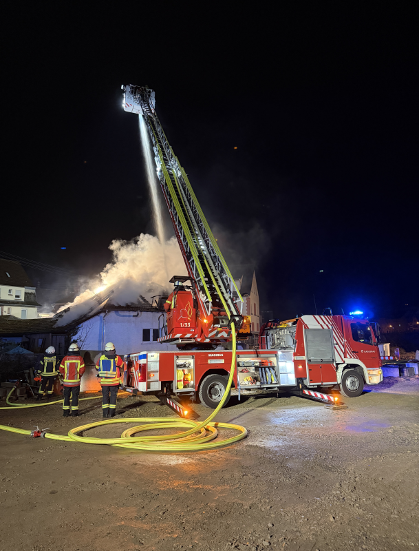 Einsatz Nr. 39Am 24.12.2025 um 03:52 Uhr wurde die Feuerwehrabteilungen Gernsbach, Gaggenau, Ottenau und Hörden zu einem B3 - Dachstuhlbrand nach Gernsbach in die Bleichstraße alarmiert. Beim Eintreffen der Feuerwehr stellte sich folgende Lage dar: Da sich keine Personen mehr im Wohngebäude aufhielten, konzentrierte man sich auf die Löschmaßnahmen. Mit zwei Trupps und zwei C-Rohren bekämpfte man den Brand. Als die Drehleiter DL 23/12 der Feuerwehr Gaggenau eingetroffen und aufgestellt war, übernahmen wir die Wasserversorgung. Um 5:30 Uhr war der Brand unter Kontrolle. Die umfangreichen Nachlöscharbeiten waren sehr zeitaufwendig. Deshalb kamen auch die Höhenrettungstruppe zum Einsatz. Ebenfalls war auch die Drohneneinheit der Feuerwehr Rastatt im Einsatz. Um 9:30 Uhr wurden wir aus dem Einsatz heraugelöst. Nachdem das Löschfahrzeug wieder sauber, bestückt und getankt war, konnten wir kurz nach 10 Uhr den Einsatz beenden. Eingesetzte Kräfte (Abteilung Ottenau): 14 Eingesetzte Fahrzeuge (Abteilung Ottenau): LF 10 (2/42), KDOW Gagg. (1/10) Eingesetzte Fahrzeuge (Abteilung Hörden): LF 10 (5/42), Eingesetzte Fahrzeuge (Abteilung Gaggenau): DL 23/12 (1/33), KDOW Gagg. (1/10) Andere Hilfsorganisationen: Polizei, RTW DRK-Rettungsdienst Mittelbaden, Feuerwehr Abt. Gernsbach, KBM v.D., DRK-OV Gernsbach, Feuerwehr Rastatt, Höhenretter Mittelbaden, THW Rastatt Einsatzdauer: 6,5 Std.